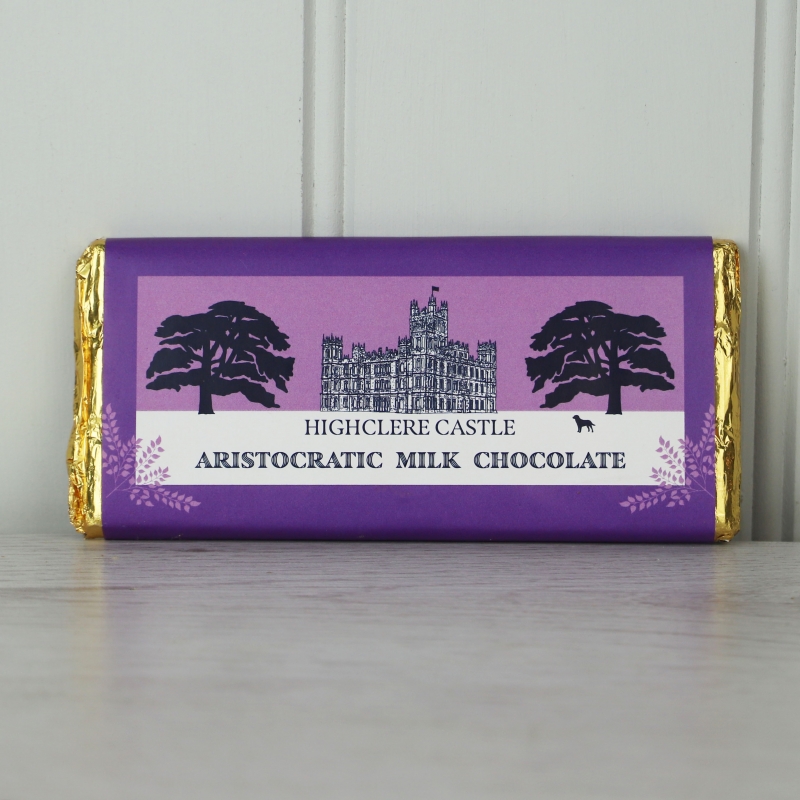 Produced in the UK for Highclere Castle, this luxury bar of milk chocolate is decorated with a picture of Highclere Castle.