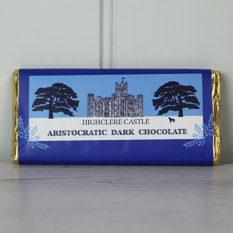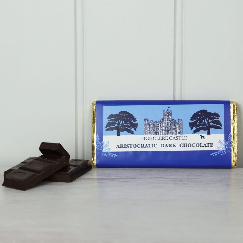 Produced in the UK for Highclere Castle, this luxury bar of dark chocolate is decorated with a picture of Highclere Castle.