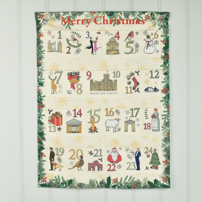 A perpetual advent calendar containing 24 stitched on pockets for filling with small gifts on the leadup to Christmas. Includes two metal eyelets for ease of hanging.