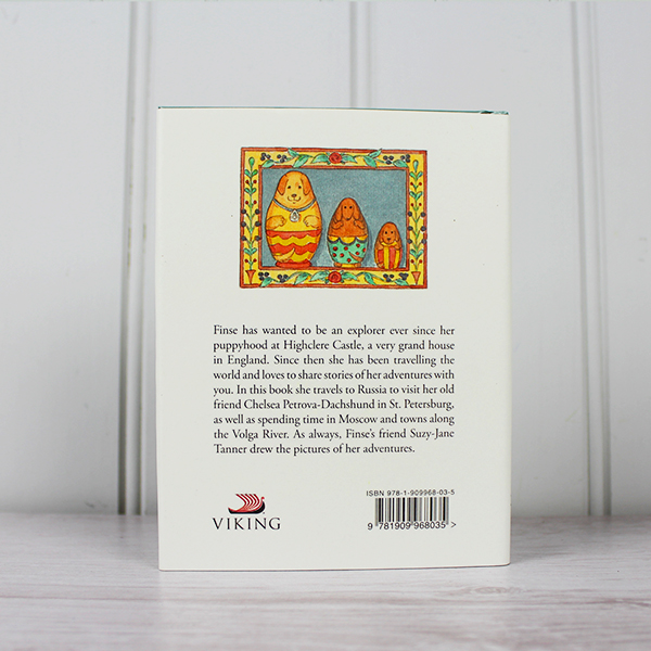 Finse was born at Highclere Castle where the world-famous TV series Dogton Abbey was filmed. She has always wanted to be an explorer and, after an idyllic puppyhood at the Castle, she now spends much of her time travelling the world. She loves sharing stories of her adventures and has written a series of books with her owner describing all the exciting places she has visited. In this book Finse travels to Russia to visit her freind Chelsea Petrova-Dachshund in St. Petersburg as well as vsiting Moscow and various towns along the Volga River.