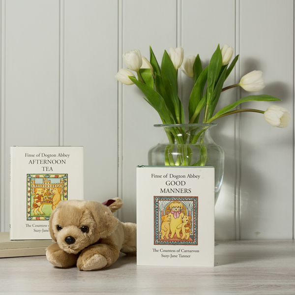 Soft toy yellow Labrador crafted to look like the real life Finse who was born at Highclere Castle and immortalised in the Finse series of books. Queen of Snoreway Ninkompoop Finse Daisy Dunsmere now spends her time travelling the world with her owner but still spends time at Highclere with her brothers..
