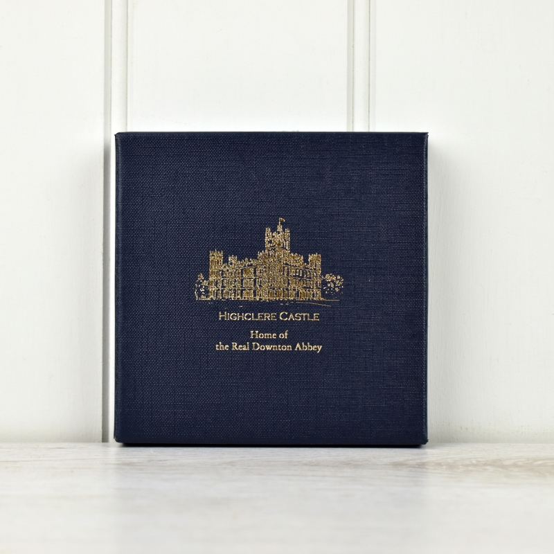 Fine bone china trinket dish decorated with the outline of the castle. Made in England. Presented in a navy blue box.