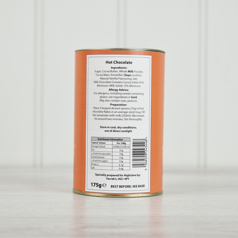 Luxurious velvety hot chocolate drink in a specially designed container for Highclere Castle. Net weight 150g