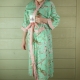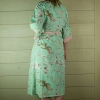 Long kimono style cotton dressing gown, generously cut with a tie belt and two patch pockets. Mint green background trimmed with pale pink bobble braid. Machine wash at 40 degrees. Fits sizes 8-16. 100% cotton.