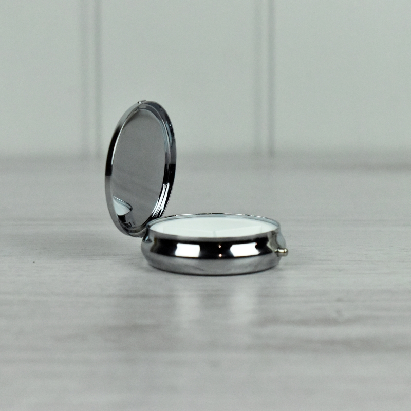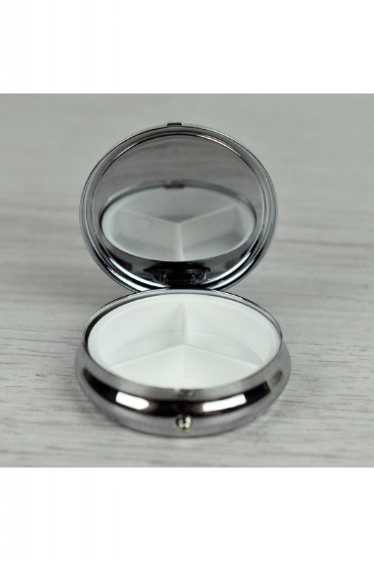 Small metal pill box with a slightly raised dome picture of the Castle. Each box is divided into three little pill containers.