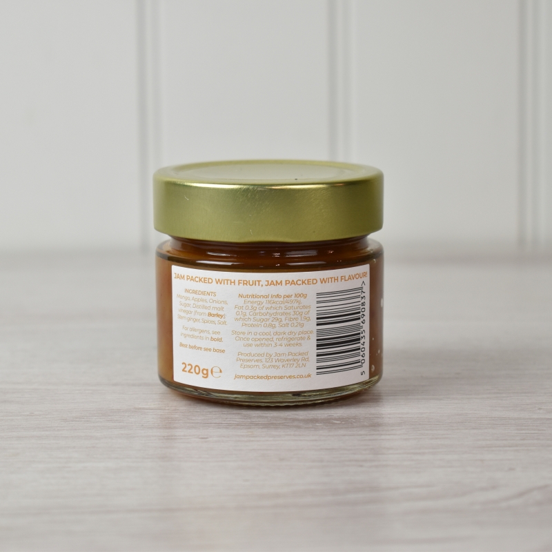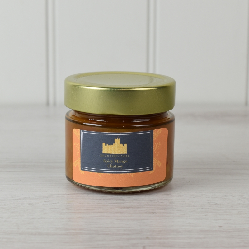 A jar of mango chutney with a spicy kick, made especially for Highclere Castle by a multi award winning supplier with years of experience producing top quality jams and chutneys.