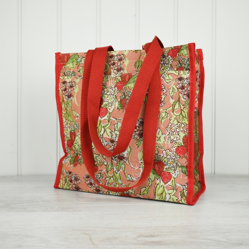 Attractive and practical shopper style bag in a tapestry fabric. Fully lined with an inside zipped pocket and a zip closure. On the oustide, one side has a velcro pocket and the other a further zipped pocket. Sturdy canvas style straps are long enough to be able to use it as a shoulder bag.